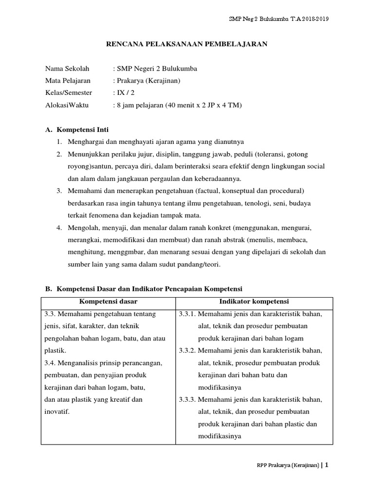 Download rpp prakarya kelas ix k13 edisi revisi 2018 semester 1.